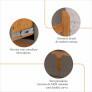 Laterais, base e prateleiras em MDF de 15mm com bordas arredondadas e laqueadas.
