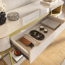 O Aparador Atlanta conta com gaveta em MDF usinada com corrediças telescópicas, proporcionando abertura suave e mais praticidade no dia a dia. Além disso, possui laterais arredondadas em MDF, trazendo um visual moderno e sofisticado ao ambiente.