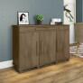 O Balcão Buffet Rubi é uma ótima alternativa para decoração da sua sala de jantar. Seu tampo pode usado como aparador, expondo objetos de decorações, porta retratos, etc. A parte inferior interna pode ser utilizada para guardar louças, toalhas de mesa e/ou objetos que você desejar. Possui também uma gaveta tripla com corrediças telescópicas, onde você pode guardar guardanapos, talheres, utensílios domésticos, etc. Balcão Rubi é fabricada em MDF/MDP com Pintura U.V que resulta em um perfeito acabamento, proporcionando durabilidade e resistência ao móvel. Puxadores em MDF e pés de madeira.