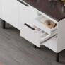 A linha de armários para cozinha Cisne, da Cozimax, é elegante e sofisticada, fabricada com chapas de madeira com acabamento fosco, possui porta condimentos em aço, prateleira e divisão interna para organizar utensílios, duas gavetas com puxadores exclusivos em estilo minimalista e uma gaveta embutida, dobradiças com amortecimento e pés na cor preta com regulagem de altura.