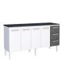Balcão Cozinha Aço 180 Vênus 3 Gavetas Com Tampo Cozimax Branco/Preto