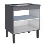 A linha de armários para cozinha Cisne, da Cozimax, é elegante e sofisticada, fabricada com chapas de madeira com acabamento fosco, acompanha tampo para fogão cooktop 5 bocas prateleira interna para organizar utensílios, puxadores exclusivos em estilo minimalista, portas com dobradiças com amortecimento e pés na cor preta com regulagem de altura.