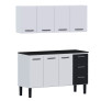 Cozinha de Aço Balcão Com Tampo Preto e Armário Aéreo Novo Vênus 150 Cozimax Branco/Preto