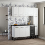 Saiba tudo sobre: Cozinha de Aço Balcão Com Tampo Preto e Armário Aéreo Novo Vênus 150 Cozimax Branco/Preto