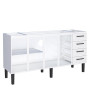 O modelo conta com pés de 21 cm com regulagem de altura, facilitando o nivelamento no piso. As gavetas com corrediças metálicas possuem interior em polipropileno virgem, material altamente resistente a impactos e que não resseca com o tempo. Para maior organização, o gabinete dispõe de divisor de talheres, prateleira interna em aço e acabamento interno nas portas.