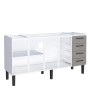 O modelo conta com pés de 21 cm com regulagem de altura, facilitando o nivelamento no piso. As gavetas com corrediças metálicas possuem interior em polipropileno virgem, material altamente resistente a impactos e que não resseca com o tempo. Para maior organização, o gabinete dispõe de divisor de talheres, prateleira interna em aço e acabamento interno nas portas.