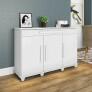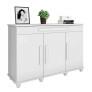 O Balcão Buffet Rubi é uma ótima alternativa para decoração da sua sala de jantar. Seu tampo pode usado como aparador, expondo objetos de decorações, porta retratos, etc. A parte inferior interna pode ser utilizada para guardar louças, toalhas de mesa e/ou objetos que você desejar. Possui também uma gaveta tripla com corrediças telescópicas, onde você pode guardar guardanapos, talheres, utensílios domésticos, etc. Balcão Rubi é fabricada em MDF/MDP com Pintura U.V que resulta em um perfeito acabamento, proporcionando durabilidade e resistência ao móvel. Puxadores em MDF e pés de madeira.
