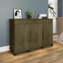 O Balcão Buffet Rubi é uma ótima alternativa para decoração da sua sala de jantar. Seu tampo pode usado como aparador, expondo objetos de decorações, porta retratos, etc. A parte inferior interna pode ser utilizada para guardar louças, toalhas de mesa e/ou objetos que você desejar. Possui também uma gaveta tripla com corrediças telescópicas, onde você pode guardar guardanapos, talheres, utensílios domésticos, etc. Balcão Rubi é fabricada em MDF/MDP com Pintura U.V que resulta em um perfeito acabamento, proporcionando durabilidade e resistência ao móvel. Puxadores em MDF e pés de madeira.