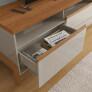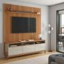 Com tampo robusto em MDP 37mm, o rack garante resistência e durabilidade. Conta com 2 gavetas com corrediças telescópicas para armazenamento eficiente, além de 3 nichos para eletrônicos que facilitam a organização dos aparelhos. A porta basculante com pistão a gás permite abertura suave, enquanto os puxadores e pés em madeira maciça reforçam a sofisticação e a firmeza da estrutura.