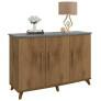 O Balcão Buffet Diamante é uma ótima alternativa para decoração da sua sala de jantar. Seu tampo de vidro pode usado como aparador, expondo objetos de decorações, porta retratos, etc. A parte inferior interna pode ser utilizada para guardar louças, toalhas de mesa e/ou objetos que você desejar. Puxadores em MDF e pés de madeira maciça.