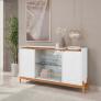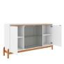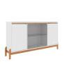 Com a mistura de elementos minimalista e retrô, o buffet Bari é um móvel cheio de personalidade e indicado para deixar sua sala de jantar ou estar, ainda mais charmosa. Possui quatro portas, sendo duas em vidro temperado de 4mm e as outras duas em MDF de 15mm ambas com prateleiras internas. Estrutura de pés de madeira maciça. É ideal para armazenar aparelhos de jantar, travessas e copos. Seu tampo também pode ser utilizado como apoio para objetos decorativos, bebidas ou até mesmo como bancada para acomodar utensílios para servir drinques e petiscos.