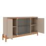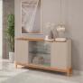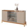 Com a mistura de elementos minimalista e retrô, o buffet Bari é um móvel cheio de personalidade e indicado para deixar sua sala de jantar ou estar, ainda mais charmosa. Possui quatro portas, sendo duas em vidro temperado de 4mm e as outras duas em MDF de 15mm ambas com prateleiras internas. Estrutura de pés de madeira maciça. É ideal para armazenar aparelhos de jantar, travessas e copos. Seu tampo também pode ser utilizado como apoio para objetos decorativos, bebidas ou até mesmo como bancada para acomodar utensílios para servir drinques e petiscos.