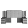 Cabeceira para cama box Suiça vai trazer toda modernidade para seu quarto. Possui 2 criados com 2 gavetas com corrediças telescópicas em cada criado e acabamento estofado capitone com 2 opções de regulagem de altura.