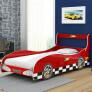 A Cama Rally possui design em formato de carro, com acabamento em linhas arredondadas e cabeceira em formato de aerofólio. Vem acompanhada de arte impressa decorativa, que imitam um carro de corrida, para diversão e conforto dos meninos. A resistência também é garantida com matéria-prima 100% MDF com excelente acabamento com Pintura U.V. Cama Rally é feita para colchão de solteiro de 88 cm de largura x 188 cm de comprimento. Não acompanha colchão, ok?