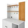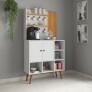 O Balcão Aurora apresenta um ripado decorativo que adiciona charme ao ambiente, além de ganchos para até 06 xícaras e passa fio para máquina de café, garantindo organização e funcionalidade. Seus pés palito em madeira maciça proporcionam estabilidade e um toque retrô, enquanto os puxadores de metal reforçam a durabilidade e elegância do móvel.