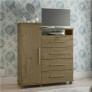 Cômoda Juma é prática e com design refinado, ela é produzida em MDF/MDP e acabamento com Pintura U.V, garantindo maior beleza e durabilidade à peça. Suas quatro gavetas possuem corrediças telescópicas e boa disposição interna. A porta lateral possui 02 prateleiras interna para que você possa guardar seus sapatos ou qualquer outro objeto que preferir. Possui também 1 tampo tipo basculante com espelho e divisões para guardar joias, semi-joias, etc. Ah! Acompanha os pés, ok?