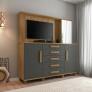Cômoda com Painel Para TV 42 Polegadas Espelho 183cm Estrela RV Móveis Cinamomo/Grafite