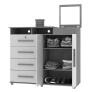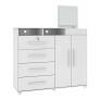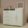 Cômoda Diamante Max vai trazer organização e praticidade para seu quarto. Possui 4 gavetas grandes com corrediças metálicas (uma com chave) e 1 gaveta com porta jóia e espelho. A Cômoda Diamante também possui 2 portas articuladas com 2 prateleiras internas onde você pode usar como sapateira ou até mesmo guardar objetos variados. Ah! Seu pés são de PVC a prova d'àgua.