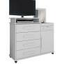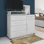 Cômoda Roma possui design moderno e super funcional. Possui 5 gavetas com corrediças telescópicas para você organizar todas suas roupas, sendo uma delas com chave para você guardar seus objetos com segurança. Uma porta lateral articulada com dobradiças de pressão e 2 prateleiras internas que pode ser usada como sapateira. 1 Tampo articulado com dobradiças metálicas e espelho, além de espaço para TV e aparelho variado. Cômoda Roma é fabricada em MDF/MDP com tampo e base em MDF 20 mm.