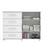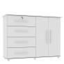 Cômoda Jade vai trazer organização e praticidade para seu quarto. Possui 4 gavetas com corrediças metálicas (uma com chave). 2 portas articuladas com 2 prateleiras internas onde você pode usar como sapateira ou até mesmo guardar objetos variados. Ah! Seu pés são de PVC a prova d'àgua.