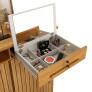 Cômoda Max New é uma peça multi-funcional. Na parte esquerda possui 5 gavetas com corrediças telescópicas que proporcionam abertura total da gaveta com deslizamento silencioso e macio. Na parte centro e direita temos 2 portas de correr em trilho de alumínio, um lado temos um cabideiro para organizar suas camisas, blusas e camisetas, na outra porta temos 2 prateleiras internas onde podemos usar como sapateira ou também para organizar suas roupas ou toalhas. Na parte superior temos espaço para aparelho receptor ou DVD e ao lado temos 1 gaveta com divisórias para bijuterias, chave e espelho. Ah!!! A Cômoda Max possui rodízios que facilitam na hora da limpeza, tampo feito em MDP 25 mm e Pintura é U.V proporcionando um perfeito acabamento. Fantástica, não é?