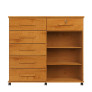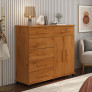 A Cômoda Platina possui 5 gavetas grandes e 1 gaveta menor com chave, todas com corrediças metálicas, proporcionando abertura suave e fácil. Além disso, conta com 2 portas articuladas com prateleiras internas, que podem ser utilizadas como sapateira ou para guardar diversos objetos.