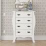Cômoda retro branco, possui um estilo clássico imperial que se dá por suas curvas e puxadores de metal e isso agrega na decoração do ambiente. Geralmente é acomodado em quartos, mas também pode ser colocado em salas de estar e corredores para preencher o espaço. No seu tampo superior você pode inovar e dispor diversos objetos decorativos como luminárias, vasos, estatuetas, porta-retratos, entre outros.