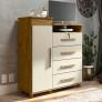 Cômoda Juma é prática e com design refinado, ela é produzida em MDF/MDP e acabamento com Pintura U.V, garantindo maior beleza e durabilidade à peça. Suas quatro gavetas possuem corrediças telescópicas e boa disposição interna. A porta lateral possui 02 prateleiras interna para que você possa guardar seus sapatos ou qualquer outro objeto que preferir. Possui também 1 tampo tipo basculante com espelho e divisões para guardar joias, semi-joias, etc. Ah! Acompanha os pés, ok?