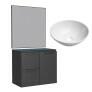 Conjunto Banheiro Aço Gabinete Osiris 60 Com Espelho Gaia e Cuba Cuia Branca Cozimax Preto