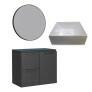 Conjunto Banheiro Aço Gabinete  Osiris 60 Com Espelho Luna e Cuba Prisma Cozimax Preto