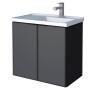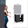 2 portas 100% aço (fosca) 1 Prateleira interna Puxadores em aço Lavatório em mármore sintético Dobradiças com amortecimento 5 anos de garantia Design moderno. Foto gabinete aberto ilustrativa apenas para verificar interno do produtoDimensões do Gabinete Umbu Montado