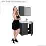 2 portas 100% aço (fosca) 1 Prateleira interna Puxadores em aço Lavatório em mármore sintético Dobradiças com amortecimento 5 anos de garantia Design moderno. Foto gabinete aberto ilustrativa apenas para verificar interno do produtoDimensões do Gabinete Umbu Montado