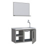 Fabricado em aço eletrogalvanizado com pintura em pó eletrostática, o conjunto oferece alta resistência à umidade e fácil limpeza. O kit é completo, pois acompanha gabinete, lavatório em mármore sintético e espelho, proporcionando um ambiente funcional e pronto para uso.