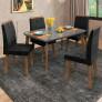 Conjunto Mesa de Jantar Tampo Vidro Com 04 Cadeiras 120x90 Jade RV Móveis Grafite/Preto