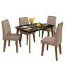 Conjunto Mesa de Jantar Tampo Vidro Com 04 Cadeiras 120x90 Jade RV Móveis Preto/Pena Caramelo