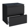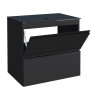 O gabinete Gaia possui porta basculante com pistão a gás, que abre suavemente para baixo, garantindo conforto e segurança no uso. Conta também com gaveta em aço com corrediças telescópicas, oferecendo abertura suave e total, além de puxadores em perfil de alumínio, que reforçam o visual contemporâneo do móvel.