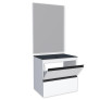 O conjunto acompanha o Espelho Gaia, que amplia visualmente o ambiente e contribui para um banheiro mais iluminado, funcional e sofisticado.