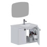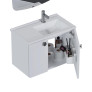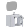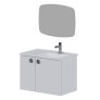 O conjunto inclui gabinete com lavatório em mármore sintético e espelho para banheiro, criando uma solução completa para organização e decoração do ambiente. Seu design moderno combina com diferentes estilos de banheiro, trazendo praticidade e sofisticação ao espaço.