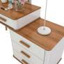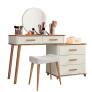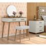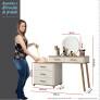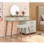 Conjunto Maitê: ele é multifunção, pois além de poder ser utilizado como o camarim para maquiagem e penteados, ele também é útil como escrivaninha, criando um cantinho de estudos ou para o trabalho em dormitórios mais compactos. Assim, você poderá usar o móvel como penteadeira com o espelho, ou utilizá-lo como mesa para notebook, livros, ou até mesmo como um aparador, e a míni cômoda como uma peça de apoio, ou seja, o nosso consumidor poderá utilizar da forma que melhor lhe agradar.
