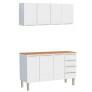 Saiba tudo sobre: Cozinha Completa Aço Balcão com Tampo Jequitibá e Armário Aéreo 150 Flora Cozimax Branco