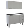 Saiba tudo sobre: Cozinha Completa Balcão Aço com Tampo Madeira e Armário Aéreo Júpiter 120 Cozimax Cinza/Preto