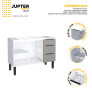 Fabricada em aço eletrogalvanizado 100% e protegida por pintura eletrostática, a Cozinha Júpiter garante alta resistência à umidade, maior durabilidade e facilidade na limpeza. O gabinete conta com puxadores em aço, pés com 21 cm de altura e regulagem e gavetas mais profundas (14 cm), oferecendo maior capacidade interna para utensílios e mantimentos.