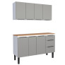 Saiba tudo sobre: Cozinha Completa Balcão Aço com Tampo Madeira e Armário Aéreo Júpiter 140 Cozimax Cinza/Jequitiba