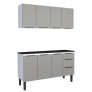 Saiba tudo sobre: Cozinha Completa Balcão Aço com Tampo Madeira e Armário Aéreo Júpiter 150 Cozimax Cinza/Preto