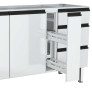 Fabricada em aço eletrogalvanizado 100% e protegida por pintura eletrostática, a Cozinha Gaia garante resistência à umidade, facilidade na limpeza e longa vida útil. O gabinete conta com pés em alumínio com regulagem de altura, puxadores em perfil de alumínio e gavetas em aço com corrediças telescópicas, proporcionando abertura suave, silenciosa e maior durabilidade.