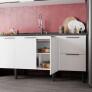 A linha de armários para cozinha Cisne, da Cozimax, é elegante e sofisticada, fabricada com chapas de madeira com acabamento fosco, possui porta condimentos em aço, prateleira e divisão interna para organizar utensílios, duas gavetas com puxadores exclusivos em estilo minimalista e uma gaveta embutida, dobradiças com amortecimento e pés na cor preta com regulagem de altura.
