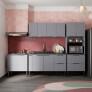 Saiba tudo sobre: Cozinha Completa de Madeira Gabinete Para Pia 150cm e Armário Aéreo Cisne Cozimax Cinza
