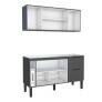 Cozinha Completa de Madeira Gabinete Para Pia 150cm e Armário Aéreo Cisne Cozimax Preto