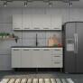 Cozinha Completa Juno é formada pelo Gabinete para pia e Armário Aéreo, ela é ideal para você que procura qualidade, modernidade e sofisticação para sua cozinha. Possui puxadores em aço na cor preto, seus pés tem 21cm com regulagem de altura, parte interna das gavetas em polipropileno virgem, mais resistente a impacto e ressecamento. As portas, base, laterais, frente de gavetas e prateleiras são tudo 100% aço galvanizado com pintura Eletrostática, garantindo maior qualidade e durabilidade ao produto. Ah!! Possui garantia de 5 anos no aço.