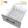 Cozinha Completa Juno é formada pelo Gabinete para pia e Armário Aéreo, ela é ideal para você que procura qualidade, modernidade e sofisticação para sua cozinha. Possui puxadores em aço na cor preto, seus pés tem 21cm com regulagem de altura, parte interna das gavetas em polipropileno virgem, mais resistente a impacto e ressecamento. As portas, base, laterais, frente de gavetas e prateleiras são tudo 100% aço galvanizado com pintura Eletrostática, garantindo maior qualidade e durabilidade ao produto. Ah!! Possui garantia de 5 anos no aço.